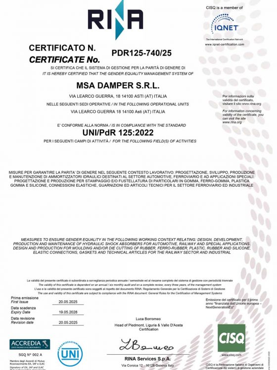 UNI ISO 45001:2018; HEALTH AND SAFETY MANAGEMENT SYSTEM