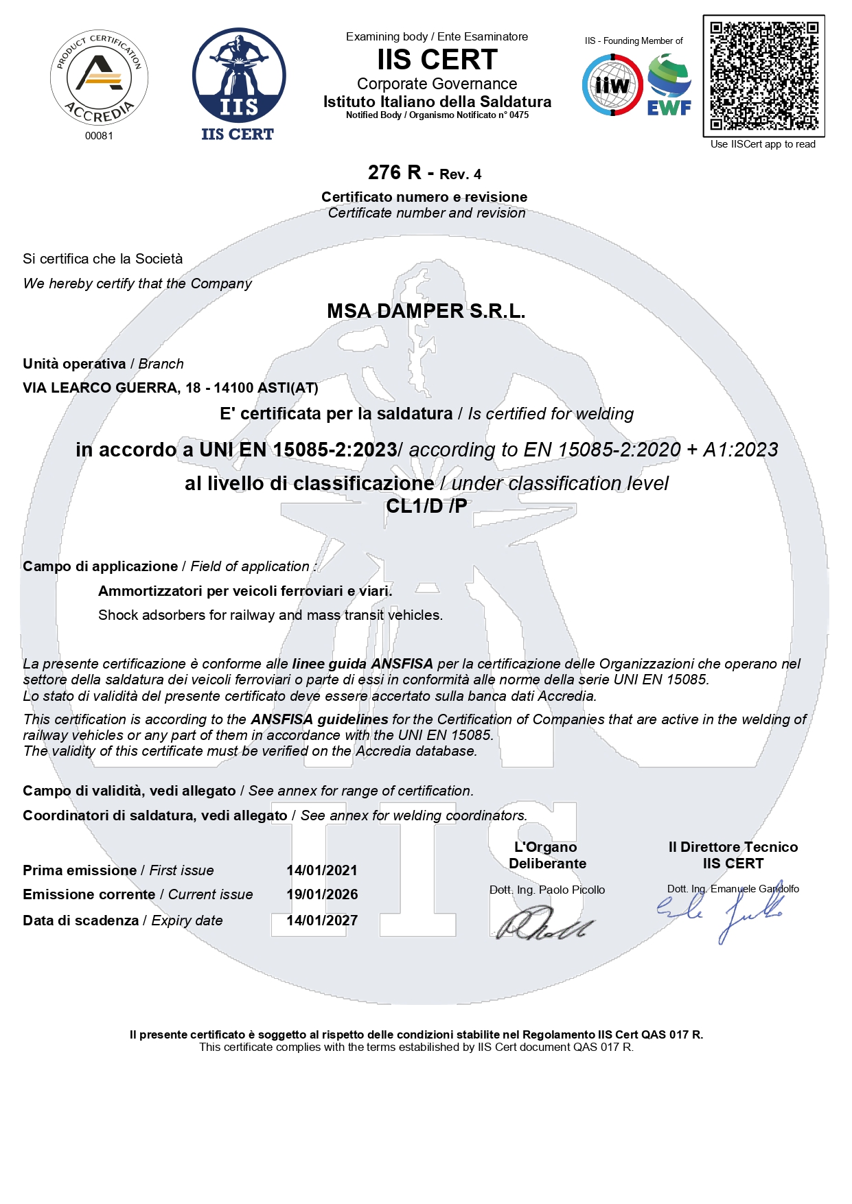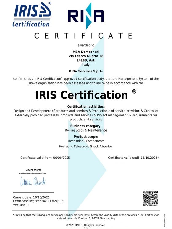 based on ISO/TS 22163:2017Certificate-Register-No: 117/20/IRIS for railway application.